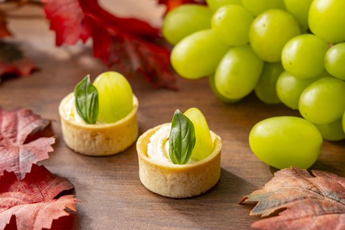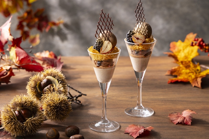 デザートには、「カダイフとチョコレートモンブランのパフェ」をはじめ、旬の巨峰をまるごと1粒飾った「巨峰ムース」など見た目も華やかなデザートの数々をご堪能いただけます。セイボリーは、「秋茄子のボロネーゼグラタン」や「有機ペンネのフリット マッシュルームソース」、「白ぶどうとマスカルポーネチーズのカプレーゼ」など、素材の持ち味を最大限に引き出したシェフこだわりの品々をお楽しみください。