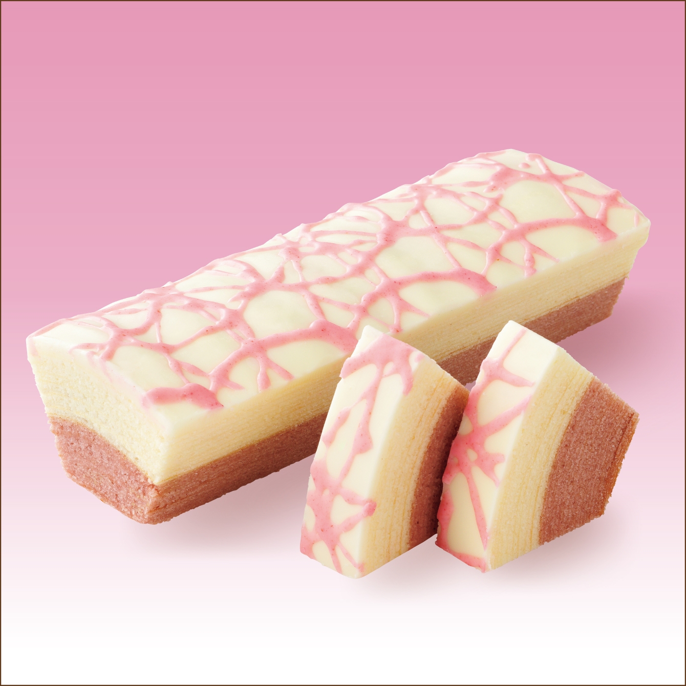 苺とミルクが美味しく溶け合う、春限定のクリーミーなバウムクーヘン。