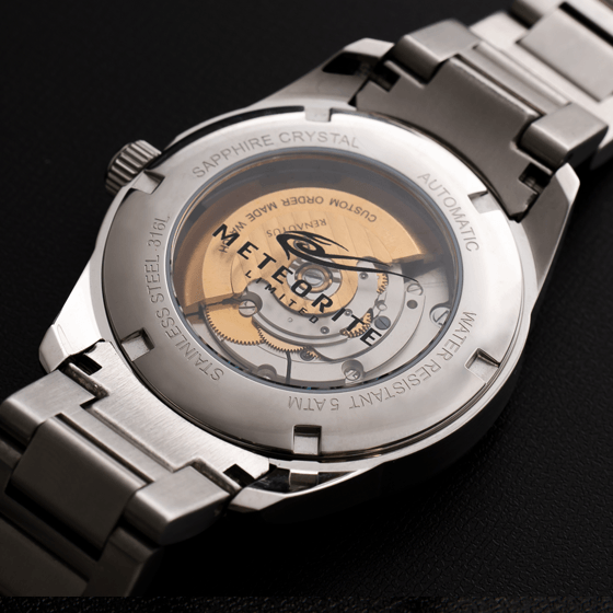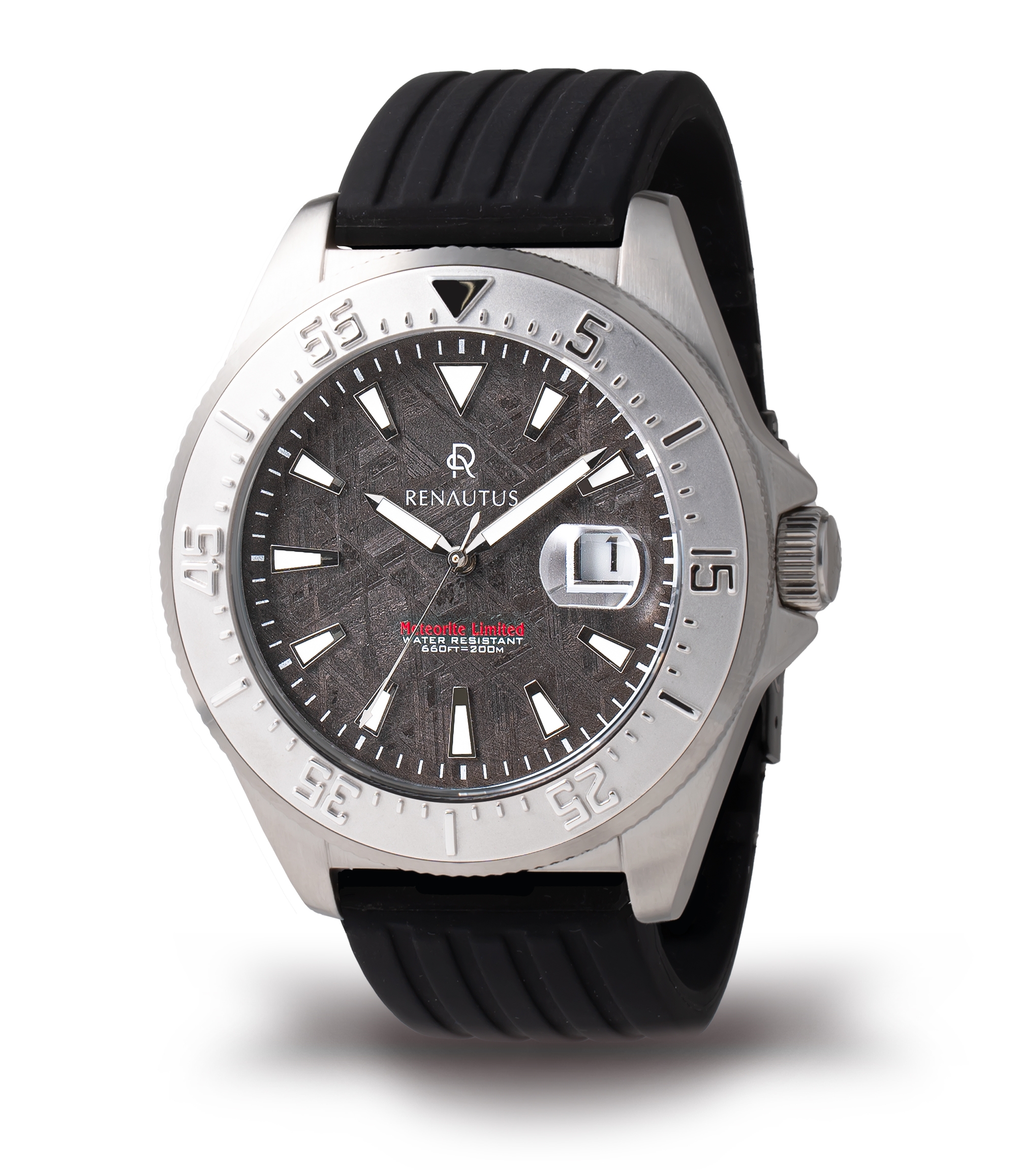 今回、ルノータスのハイエンド機械式モデル、クラシックオートマチック40に希少なメテオライト(隕石)を僅か0.4mmにカットした文字盤と信頼のスイス・ETA製を使用したリミテッドモデル。そして、扱いやすくコストパフォーマンスに優れた日本製機械式ムーブメント(MIYOTA821A)を使用したダイバーズ機械式モデルの2モデルをラインナップしました。