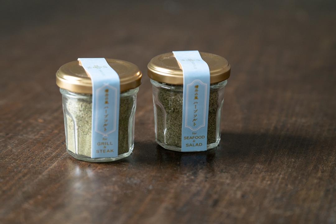 新製品『積丹の風 ハーブソルト』が出来ました。北海道積丹半島で肥料や農薬を使わず自然の在り方に習った栽培方法でのびのびと育てられた無農薬ハーブ