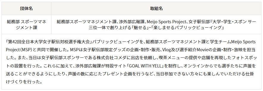 <優秀賞>大学スポーツプロモート優秀取組賞