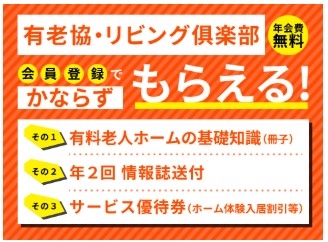 安心・安全な高齢者向け住まい選びは、確かな情報収集から!「有老協・リビング倶楽部」会員募集!(必ずもらえる特典のご案内)