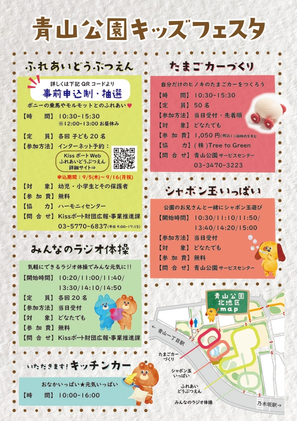 9/29「青山公園キッズフェスタ」を開催!動物とのふれあいやこどもが楽しめる催しが盛りだくさん