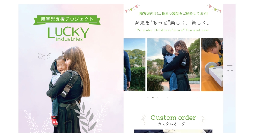 私たちLUCKY industriesは1934年の創業以来、おんぶひもや抱っこひもの製品を作り続けることで育児に頑張るママやパパを応援してきました。そんな中で「おんぶひもを特別に作ってほしい」ママからの1本の電話から私たちの福祉事業への取り組みが始まりました。