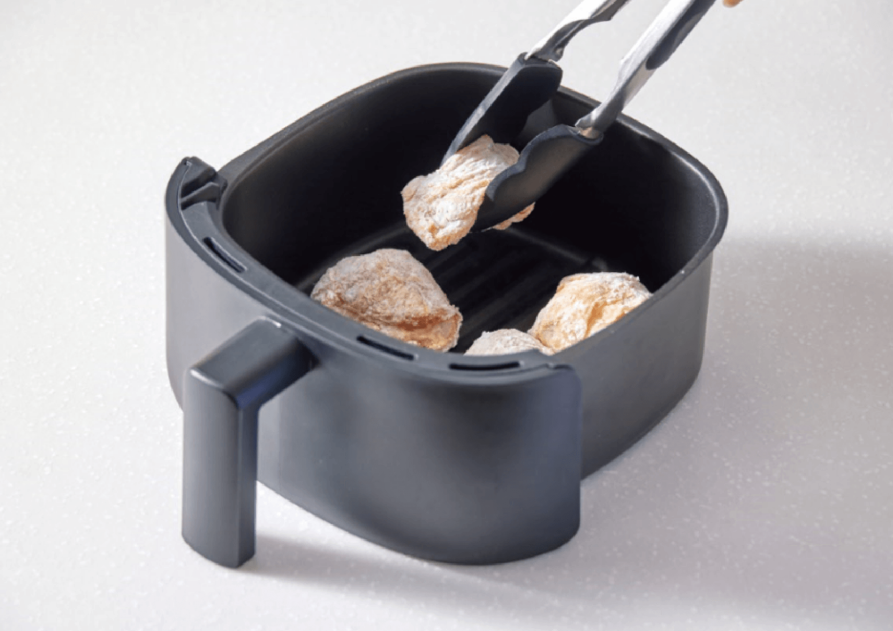 使いかたはシンプル、衣をつけた食材を予熱したバスケットに入れて調理するだけ。油は不要なので、面倒な「準備」の必要もなければ、油の後始末も必要ありません。火を使用しないためコンロのそばに付きっきりになることもなく、調理中の「油跳ね」も心配ありません。また食材そのものが持つ油で揚げるので、ヘルシーに仕上がります。例えば唐揚げでは脂質が約47%カットできます。(※100gあたりのカット率※一般的な鍋を使用し油で揚げたものとノンフライクッカーで調理したものを比較した。)