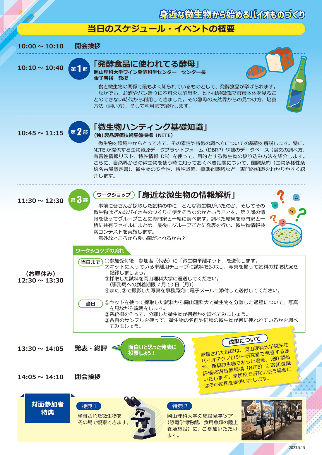 【岡山理科大学】専門家が基礎から教えるバーチャル微生物研究「身近な微生物から始めるバイオものづくり」|日時:2023年8月10日(木)10:00~14:10 開催!参加無料