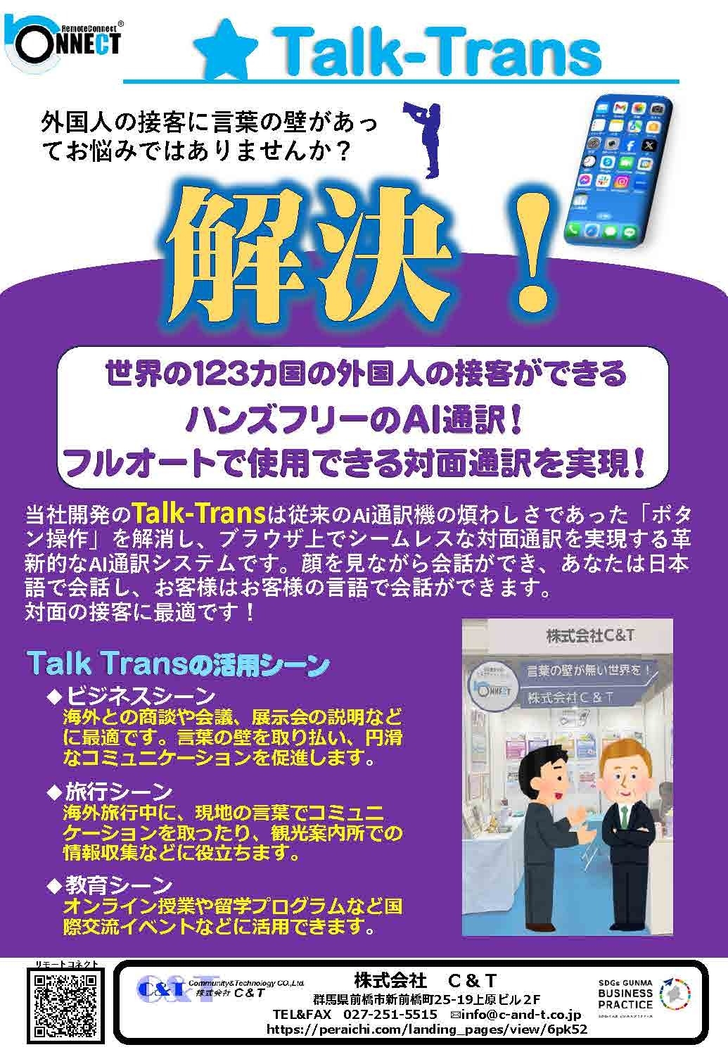 株式会社C&Tは両手が使える音声AI通訳『Talk-trans』を10月15日より開始いたします。