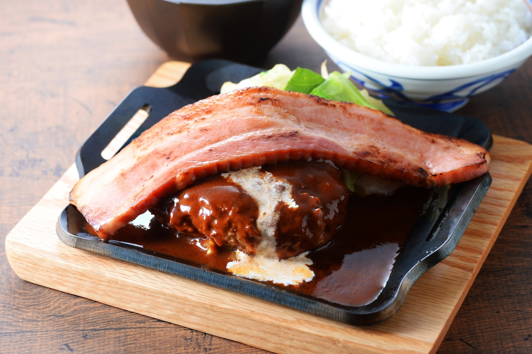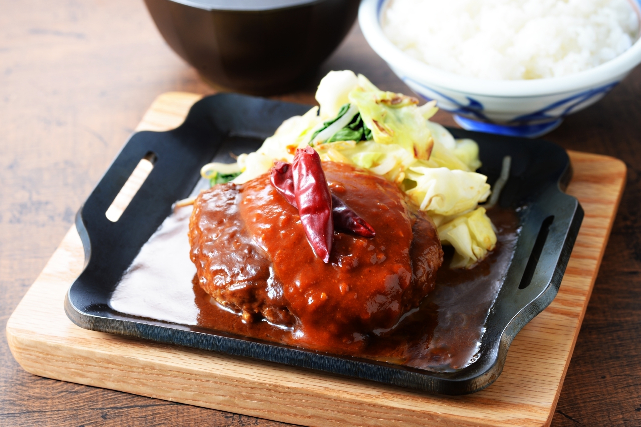 - 「箸でスッ!口の中でシュワ!」デミグラス煮込みのハンバーグ