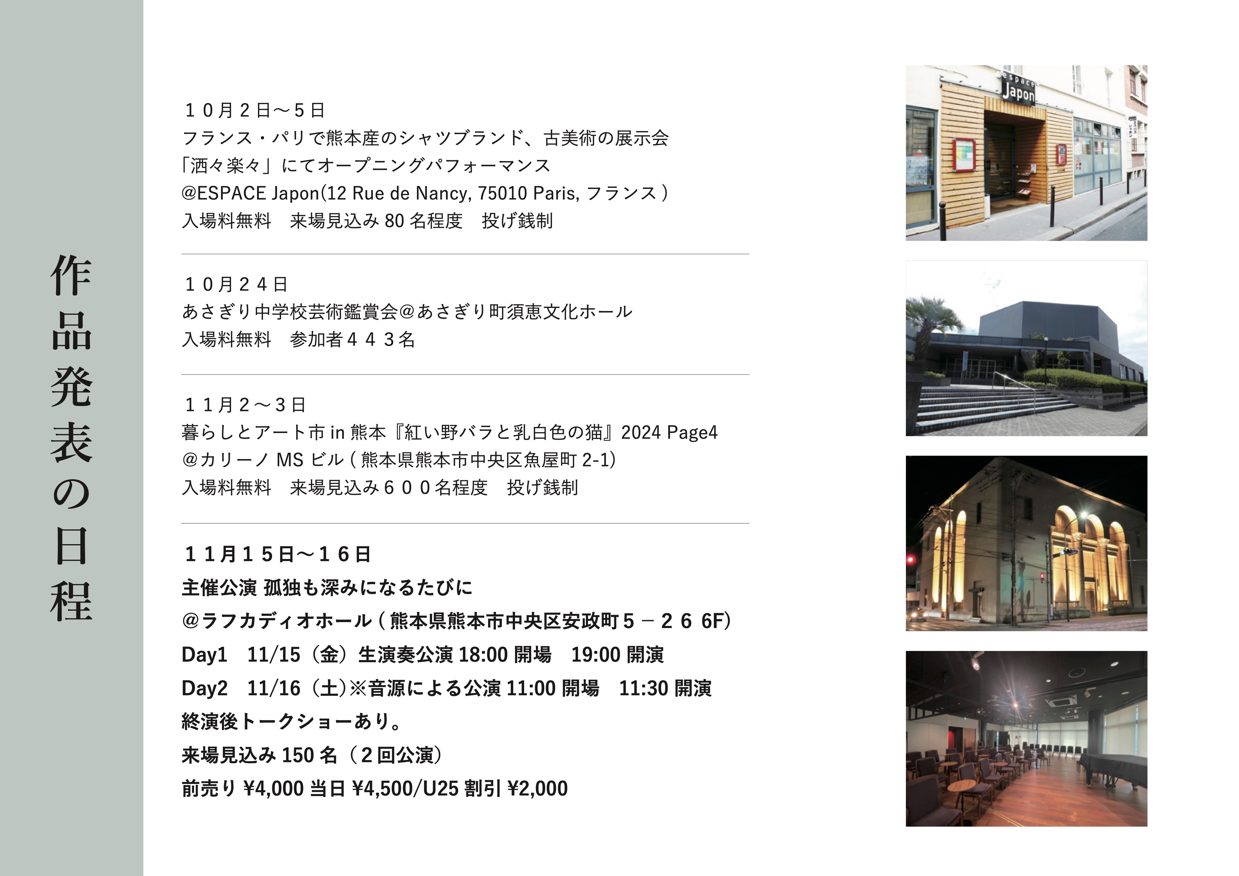 熊本出身の音楽家による作曲と演奏、若手ダンサーの起用、フランス遠征。