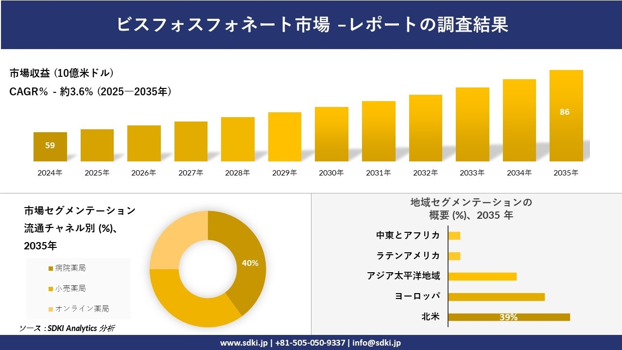 提出日 (2025年09月23)、SDKI Analytics(本社:渋谷区、東京都)は、2025年と2035年の予測期間を対象とした「ビスフォスフォネート市場」に関する調査を実施しました。