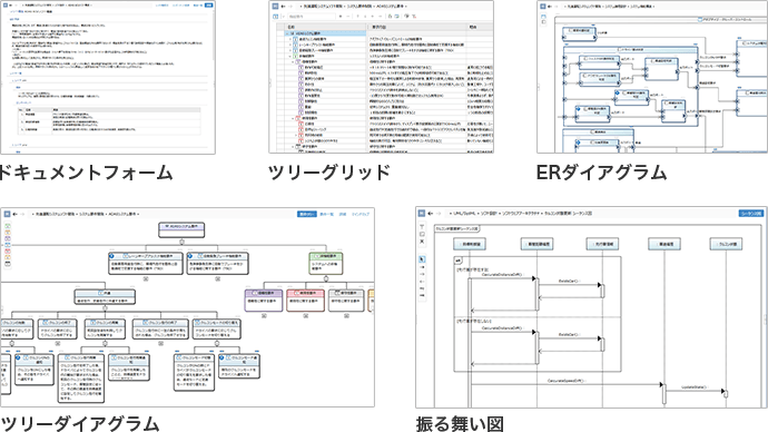 ・Wordライクな文書表示から、Excelのようなグリッド、俯瞰ができるダイアグラム等、多彩な表現力