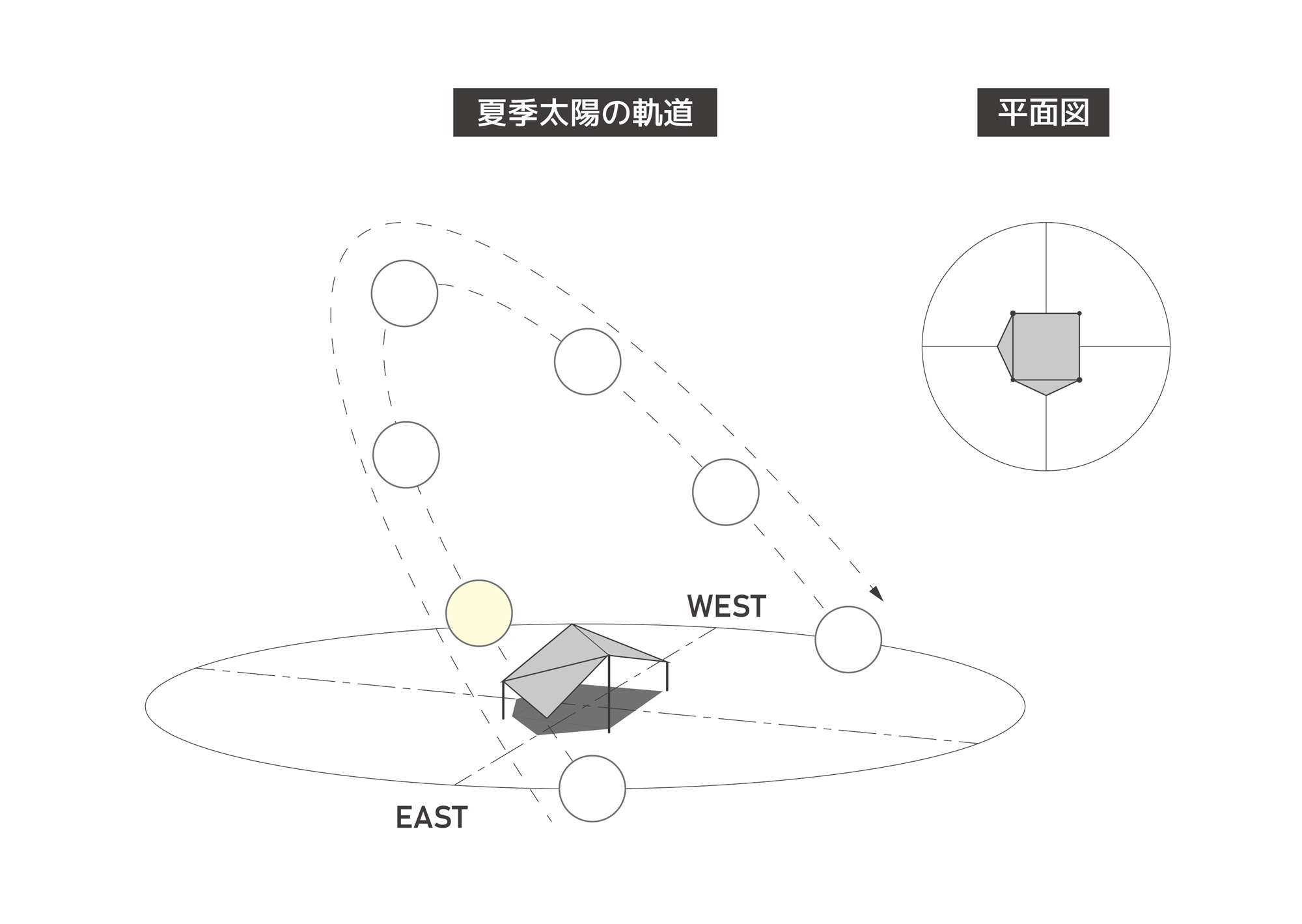 何より革新的なのは、太陽の位置に合わせて、庇シートの取り付け位置のみを変更することで、必要な場所に影を作り続けることが可能なことです。