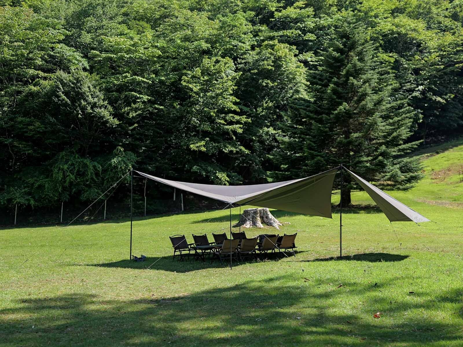 NEMOSの特筆すべき特徴の一つが、付属する「庇シート」です。メインタープの四辺に取り付け可能な「庇シート」により、自由自在な日陰の調整が可能。ソロキャンプではプライベート空間を確保する為の目隠しシートにもなりますし、ファミリーキャンプでは大人数をカバーできるシェードとしても機能します。さらに、「庇シート」は単独でタープとしても利用でき、設営の自由度が無限大に広がります。