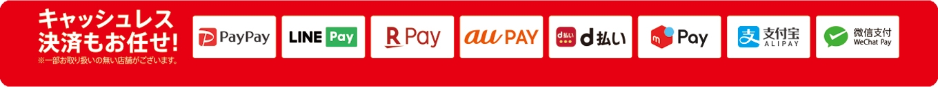スマホアプリのQRコード決済をはじめ、便利なキャッシュレス決済もご利用可能です!※一部取扱いのない店舗がございます。