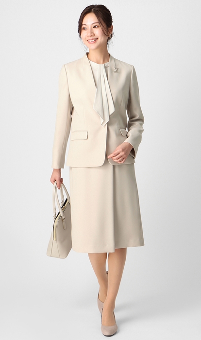 今回のブラウスは、セレモニーやイベントが増える春のシーズンに向けて、華やかさを演出する胸元のフリルタイが特徴です。フリルタイはインスタライブの中で要望のあった簡単に着脱ができる2WAY仕様で、ビジネスシーンでも幅広いコーディネートが可能。また、取り外すとメタルボタンがアクセントになった前開きデザインで、脱ぎ着も楽々です。カラー展開もフォロワーの声を反映し、どんなスーツにも合わせやすいホワイト、柔らかで優しい色味のライトグレージュ、爽やかな大人のグレーサックスの3色を用意しました。