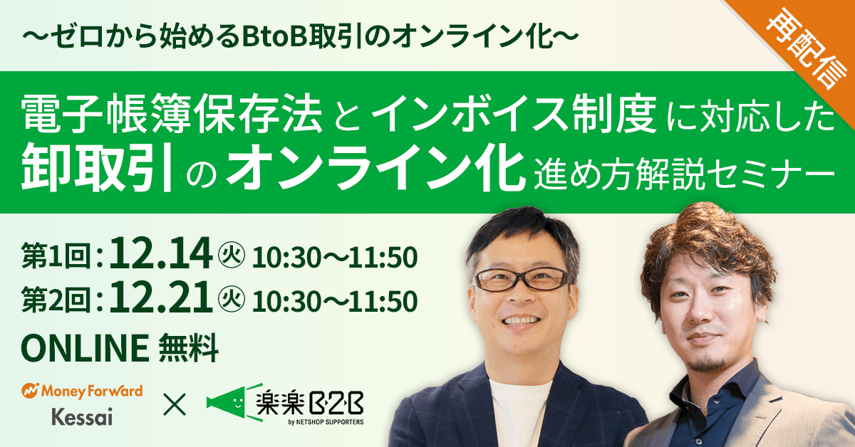 【12/14・21オンライン開催】~ゼロから始めるBtoB取引のオンライン化~ 「電子帳簿保存法」と「インボイス制度」に対応した卸取引のオンライン化進め方解説セミナー | NEWSCAST
