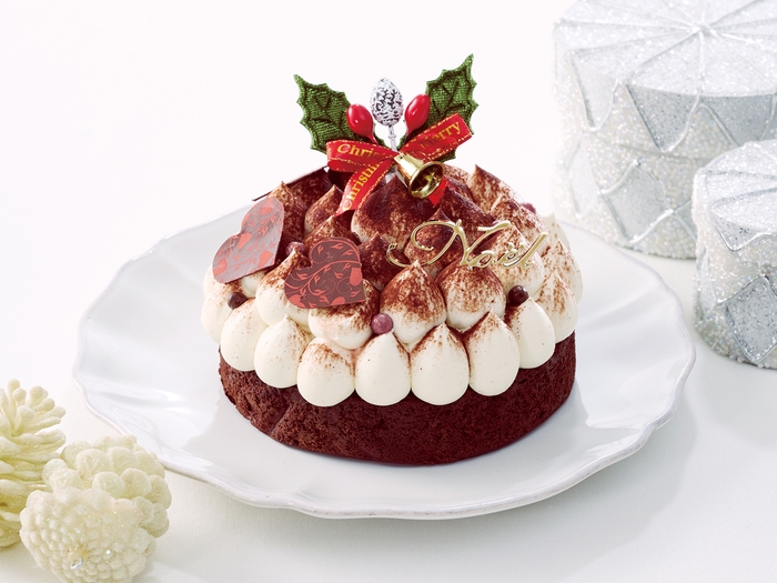 チョコレートケーキの定番・ガトーショコラを、クリスマスにふさわしい豪華なホールケーキに落とし込んだ一品です。
