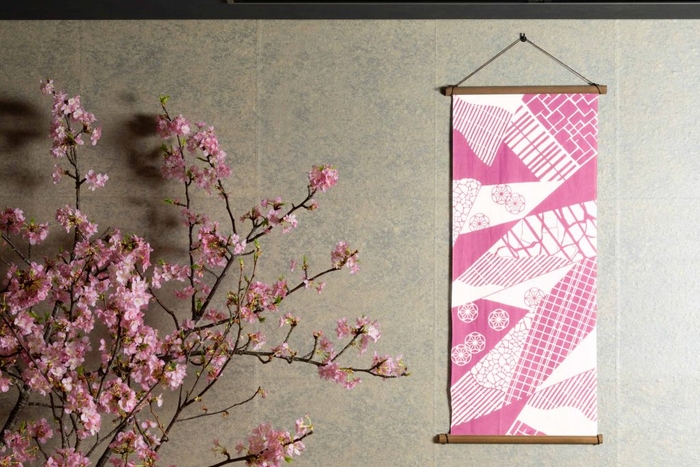 本プランの利用者限定で、星のや東京玄関前の「星のや広場」や、外観の「麻の葉くずし」の柄をモチーフにした星のや東京オリジナルデザインの手拭いをお土産として用意します。手拭いは、創業1872年の老舗「梨園染 戸田屋商店」の熟練の職人が伝統工芸である「注染」という繊維の芯まで染料を浸透させる染め方で仕上げたものです。手染めならではの色合いの美しさや風合いの良さを感じられる桜色の手拭いで、滞在の思い出をお土産として持ち帰ることができます。