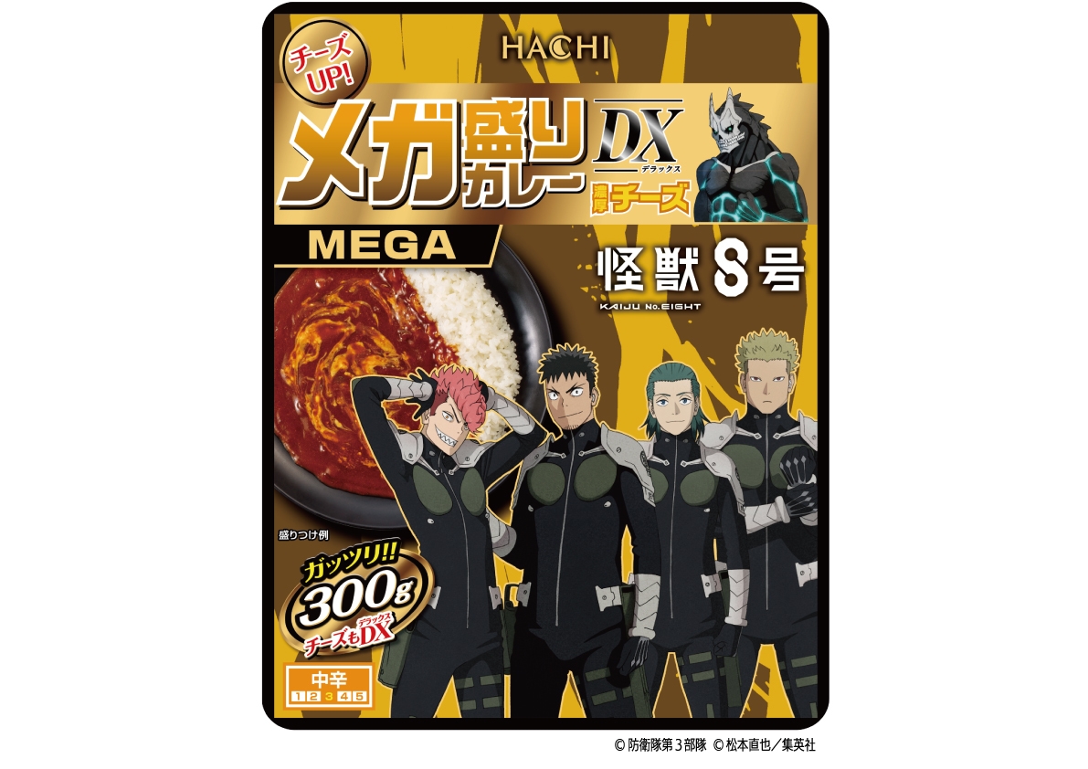 ハチ食品株式会社(大阪府大阪市、代表取締役社長:高橋 慎一、以下 ハチ食品)は、一般的なカレーの約1.5倍で大容量なメガ盛りカレーシリーズの進化版として、『メガ盛りカレー DX 濃厚チーズ』、『メガ盛りカレー DX 牛ばら肉』をアニメ『怪獣8号』デザインの限定パッケージで2024年9月2日(月)に発売いたします。