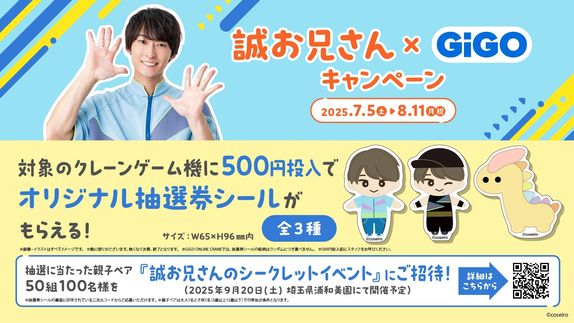 株式会社GENDA GiGO Entertainment(本社:東京都港区 代表取締役社長:二宮 一浩 以下、「当社」)は、2025年7月5日(金)よりGiGOグループのお店におきまして、第12代体操のお兄さん『誠お兄さん』こと、福尾誠さんとのコラボレーションキャンペーンを開催いたします。