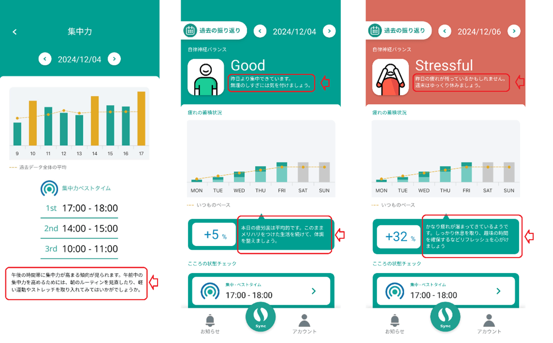 「健康経営支援サービス」のリング型またはリストバンド型のセンサーデバイスにより収集したバイタルデータと、最新の生成AIを組み合わせ、可視化された組織と個人の心的状態の課題に対して最適な解決策・打ち手を提供します。