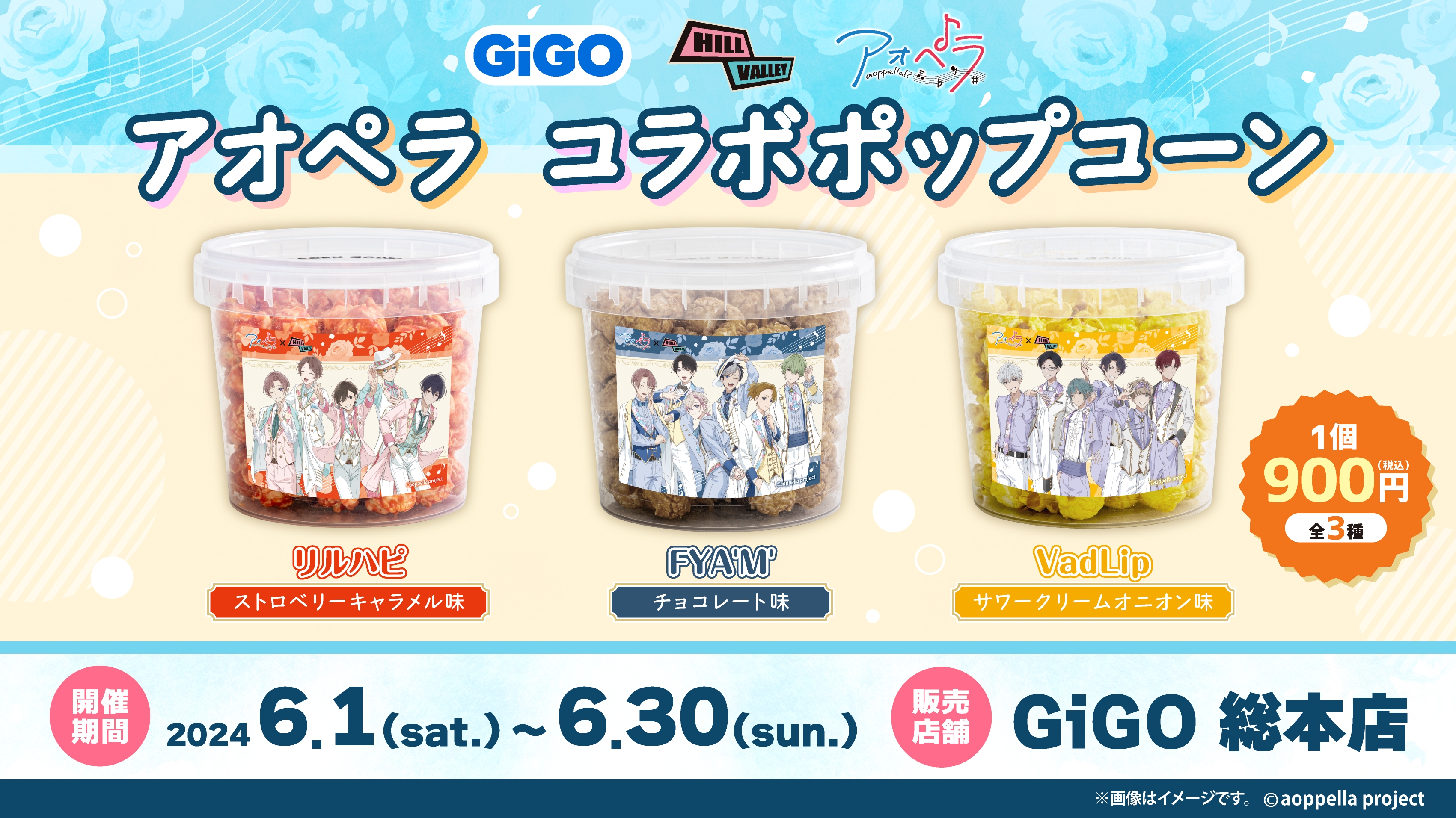 GiGO総本店にて、アオペラ -aoppella!?-とのコラボポップコーンを販売いたします。