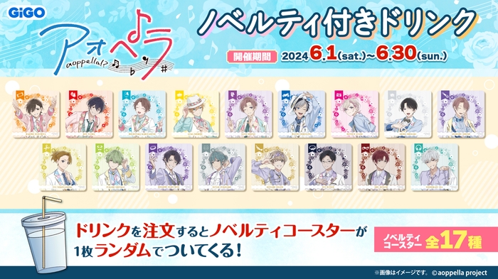対象店舗にてドリンク1点購入ごとに、ノベルティコースター(全17種:ランダム)を1枚プレゼントいたします。