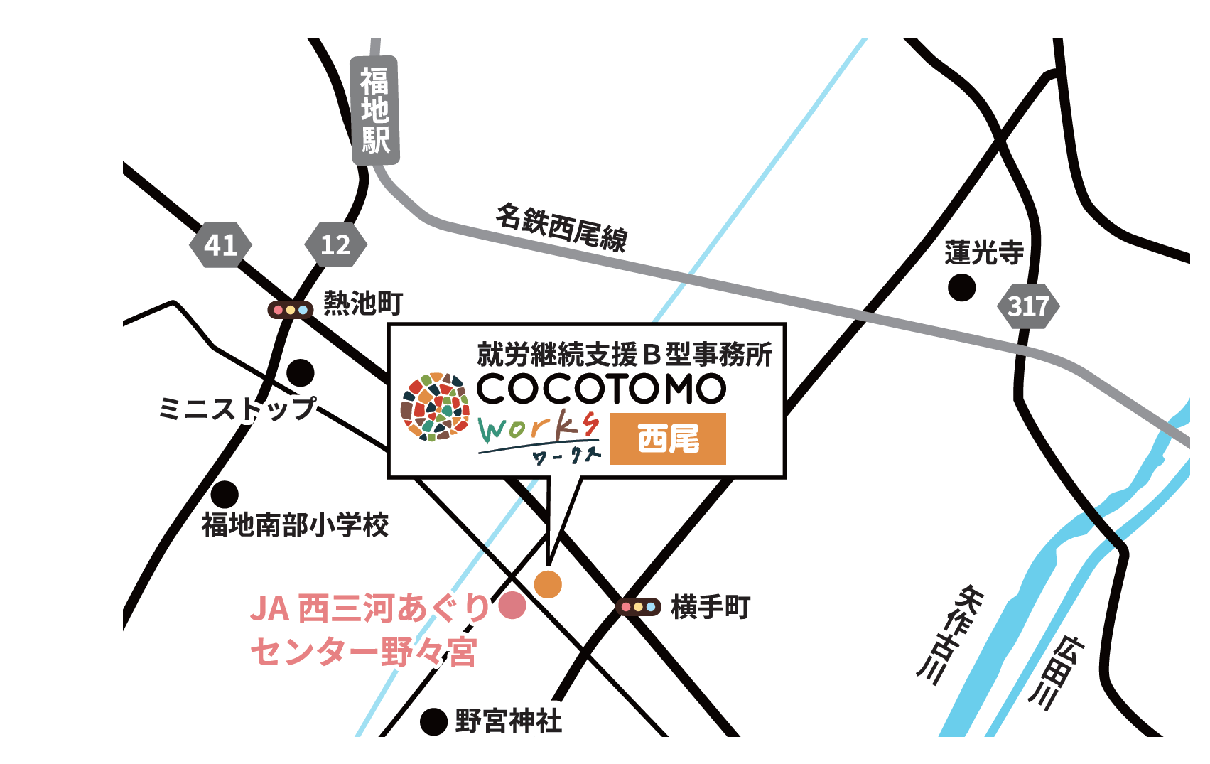 - 場所:ココトモワークス西尾(愛知県西尾市野々宮町斉藤池25-1)