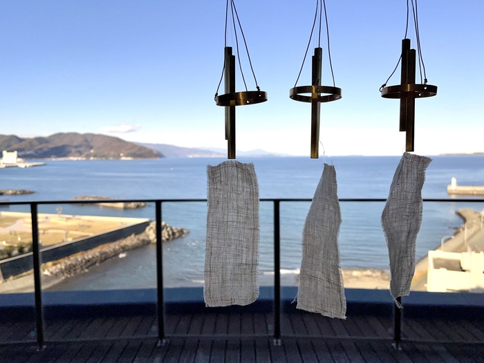 施設のコンセプトである「船旅」にちなみ、船舶金物としても使われていた真鍮製の風鈴。海風に澄んだ音が響きます。