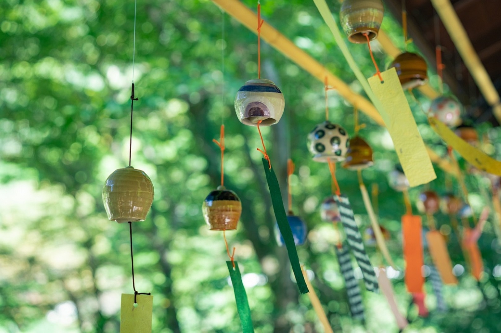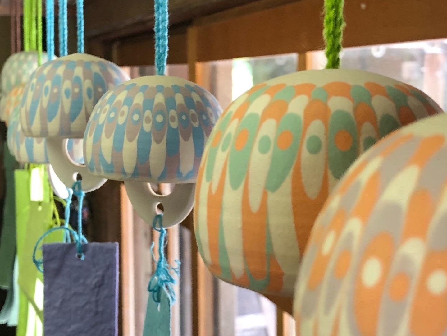 山口県萩市の陶芸家金子司氏による色彩豊かな風鈴。藩主を守る魔除けの役割も果たします。