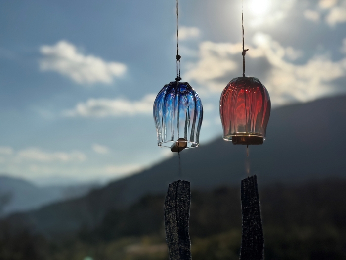 鹿児島県の伝統工芸「薩摩切子」と「薩摩ビードロ」の吹きガラスを用いた2種の風鈴。