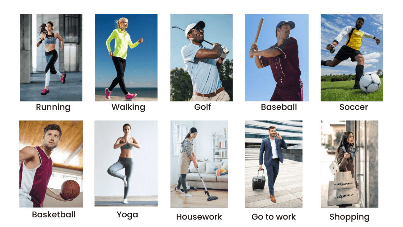 「エナジーポイント」はウォーキングやゴルフ、ランニングはもちろんのこと瞬発系のスポーツにも利用できます。また通勤・通学や家事など装着しながら生活することで、姿勢改善、代謝アップを期待できます。