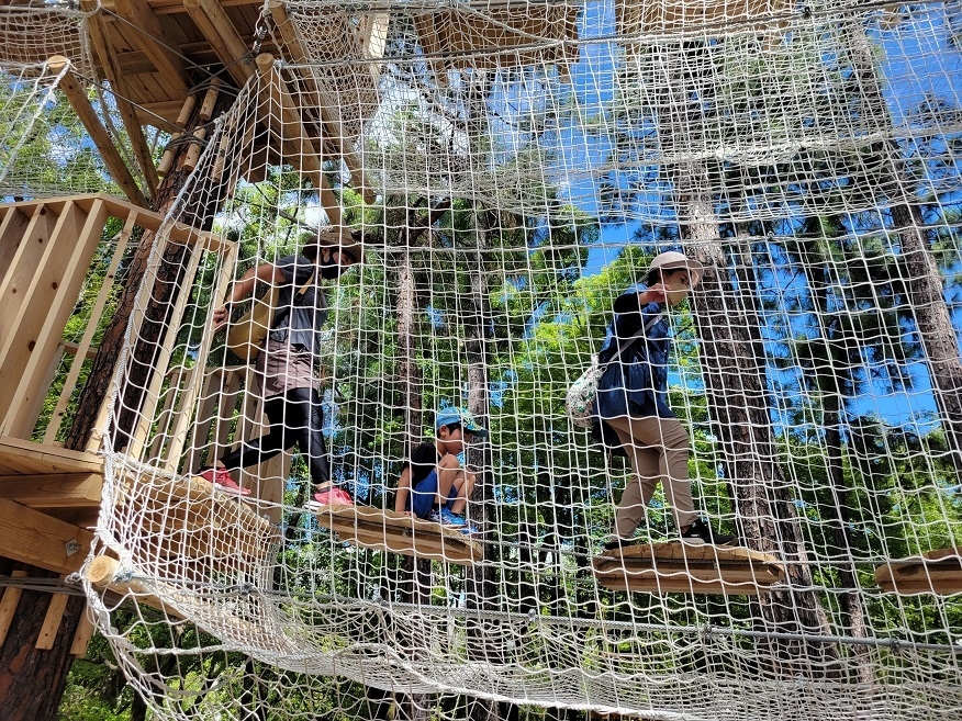 「ボウケンノモリ」は、自然の中で思いっきり体を動かして楽しむことができるアスレチック施設です。子どもたちだけでなく、大人も一緒に楽しむことができます。