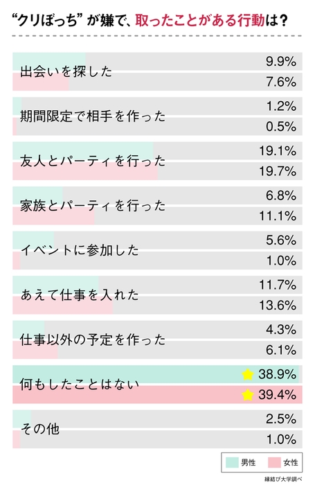 男女とも「“クリぼっち”対策は何もしない」が1位に