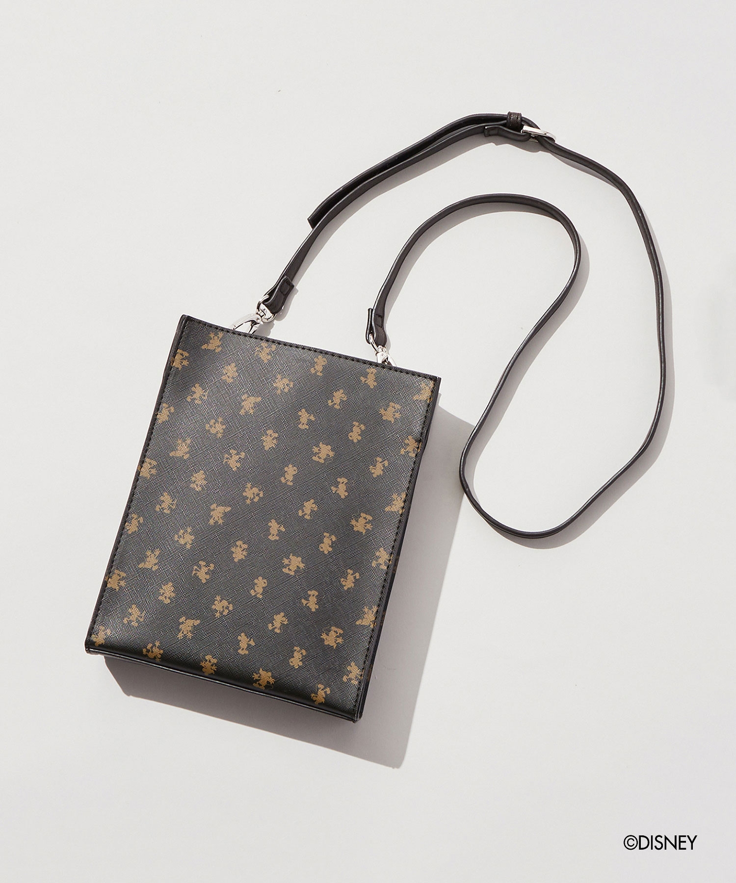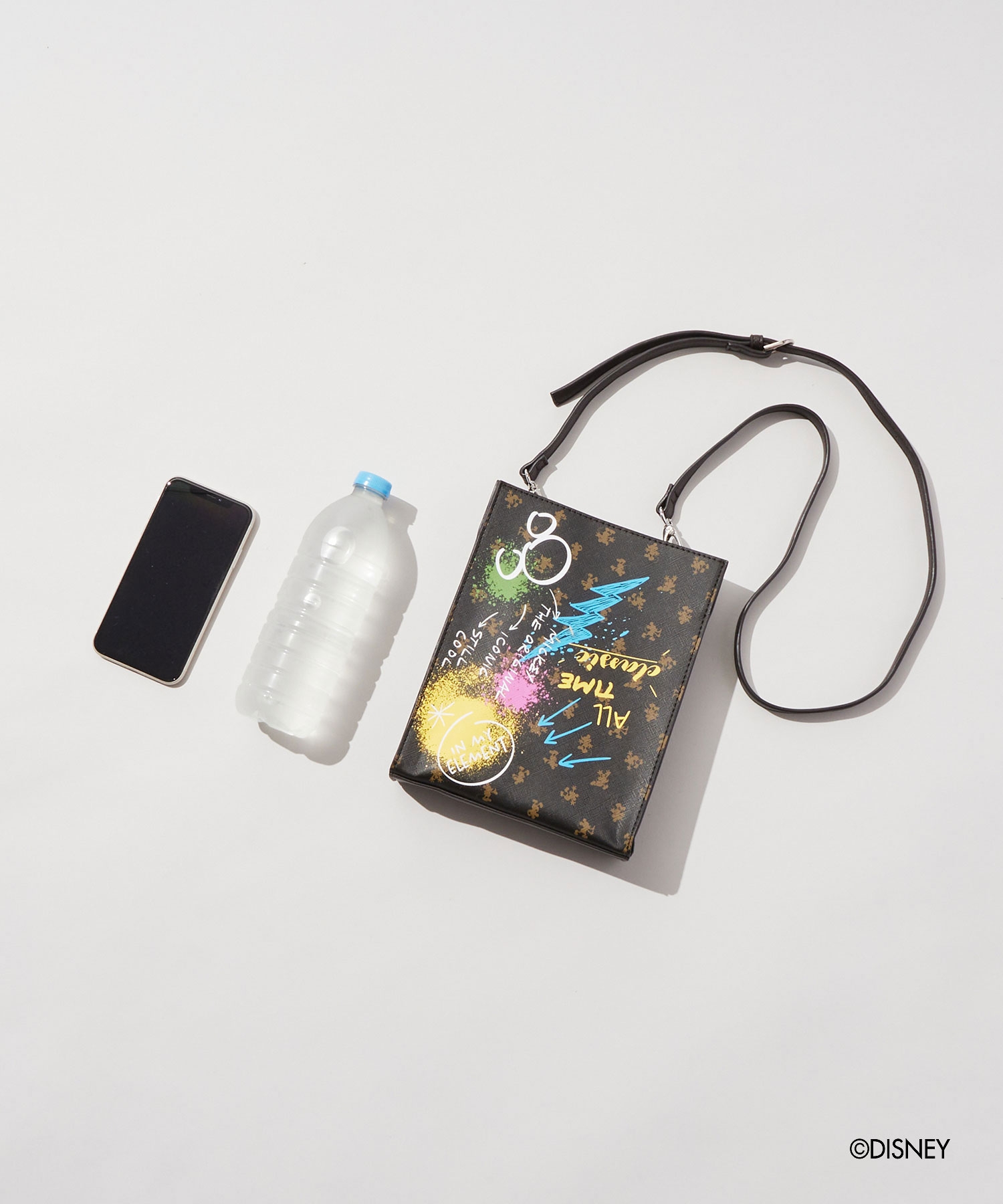 「ミッキーマウス」のシルエットが配置されたシックなモノグラムデザインをベースに、モノグラムの上から落書きした様な遊び心のあるペイントデザインも加えたショルダーバッグです。