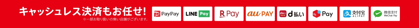 スマホアプリのQRコード決済をはじめ、便利なキャッシュレス決済もご利用可能です!※一部取り扱いのない店舗がございます。