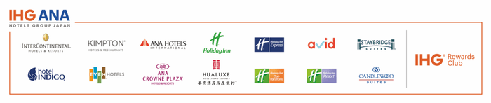InterContinental Hotels Group PLCは、グループの持株会社で、英国に設立、英国およびウェールズで登録されています。 世界中のIHGのホテルとコーポレートオフィスには、約350,000人の従業員がおり、日々世界中のお客様をお迎えしています。 日本国内では、2006年12月に、IHGとANAの業務提携によるジョイントベンチャー会社、IHG・ANA・ホテルズグループ ジャパンを設立。2021年3月現在、5ブランド(インターコンチネンタル、キンプトン、ANAクラウンプラザ、ホリデイ・イ ン及びホリデイ・インリゾート、ホテルインディゴ)、37ホテル、約10,000室を展開しています。今後もANAインターコン チネンタル安比高原リゾート、ANAクラウンプラザリゾート安比高原、ANAホリデイ・インリゾート安比高原、ホテルイン ディゴ犬山有楽苑、ホテルインディゴ軽井沢、インターコンチネンタル沖縄美らSUNリゾートの開業を予定しており、日本 においてもIHGホテルズ&リゾーツは拡大をし続け、更なる旅の選択肢を皆様にお届けしてまいります。詳細は、下記ウェ ブサイトをご参照ください。