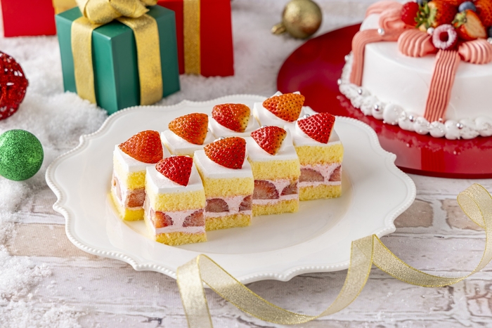 ベアたちは、プレゼントの準備で大忙しのサンタさんにサプライズしようとサンタさんの家を訪れます。感謝の気持ちを込めて、しっとりとしたスポンジにたっぷりの苺とピンク色のラズベリークリームをサンドしました。