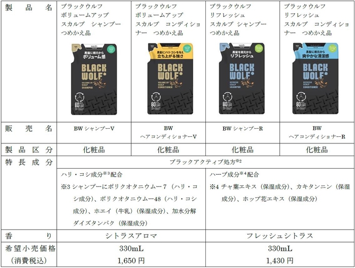 「ブラックウルフ」は、自分本来の頭皮の活力※1に着目し、ブラックアクティブ処方※2を採用した『黒髪をケアするためのヘアケアブランド』です。シャンプー、コンディショナー、スカルプエッセンス、カラートリートメントといったラインアップで2021年10月より発売しております。