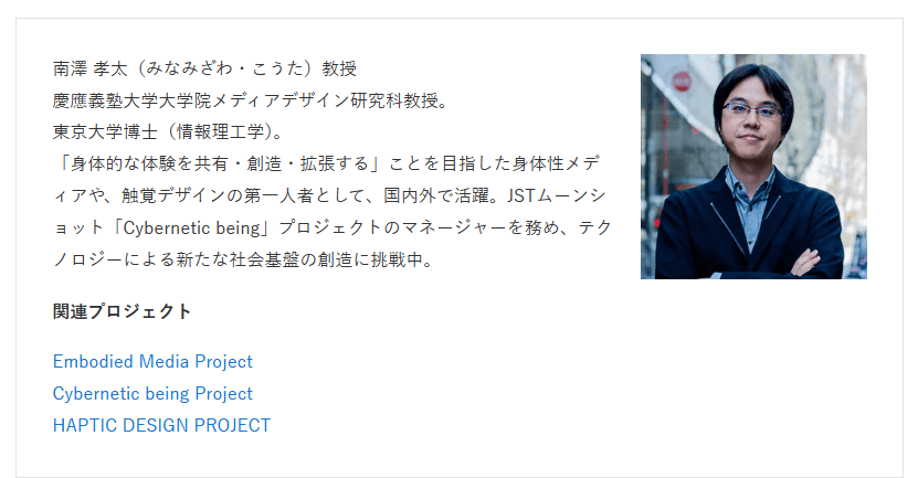 2025年5月21日(水)14:40〜16:10、DX-Labの開設を記念し、慶應義塾大学大学院メディアデザイン研究科の南澤孝太教授による特別講演会を開催。講演テーマは「身体性のデジタルトランスフォーメーション -身体性メディア技術からCybernetic being社会へ-」。最先端の研究成果とその社会実装に向けた取り組みについてお話しいただきます。※オンデマンド視聴の案内は別途、下段の関連リンクからご案内させていただきます。