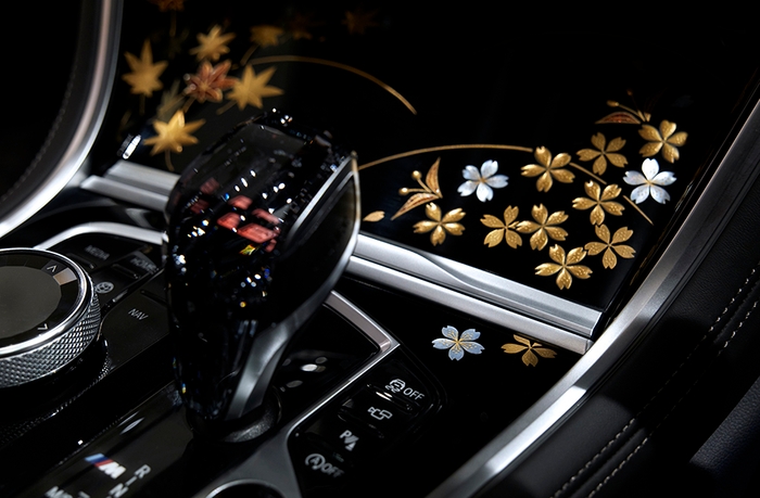 センターコンソール・リアコンソールを桜と紅葉をモチーフに蒔絵・螺鈿で装飾。四季の移り変わりの趣を感じさせる古典柄が、現代のプロダクトと融合します。平蒔絵と高蒔絵を組み合わせることで生まれる遠近感、美しく輝く螺鈿は繊細でありながら、力強く、見るものを魅了します。シンプルな空間に際立つ有機的な自然素材の美しさは、車に乗るよろこびを一層深めてくれます。
