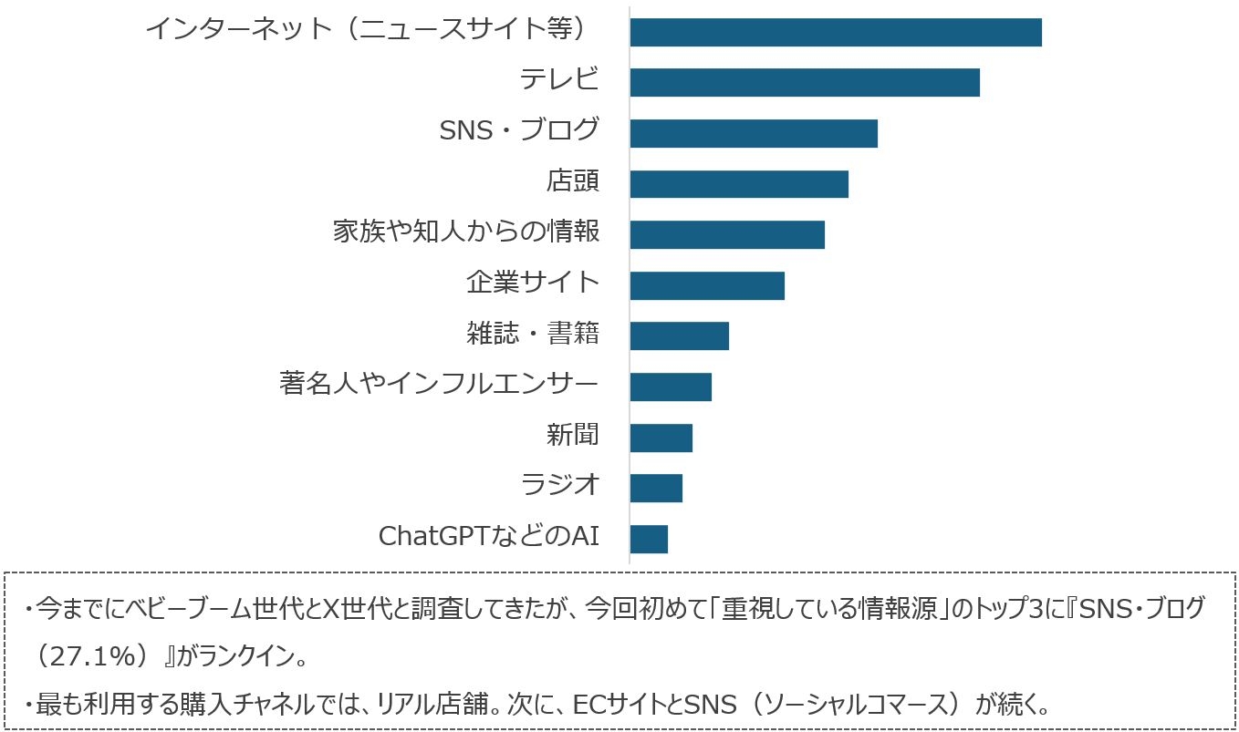 ■最も重視する情報源は、『ネット』『テレビ』に続き、『SNS・ブログ』が27.1%