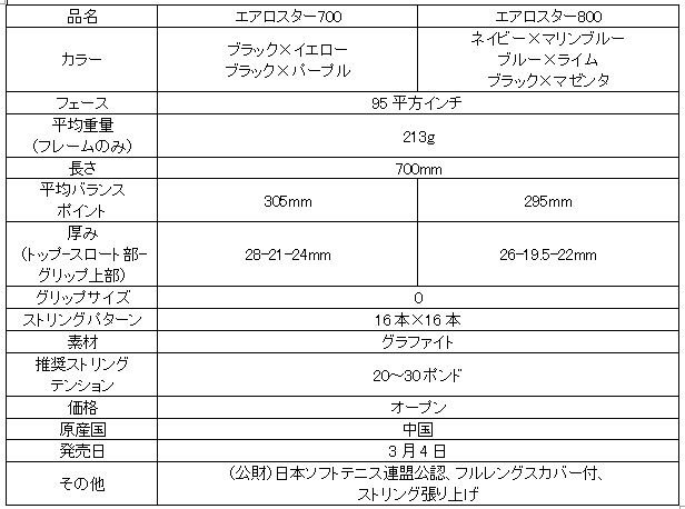 住友ゴムグループの(株)ダンロップスポーツマーケティング(社長:木越 浩文)は、ソフトテニスの初級者・入門者用ラケットのダンロップ「エアロスター」シリーズ2機種(「エアロスター700」2色、「エアロスター800」3色)を3月4日から販売します。価格は全てオープン価格です。