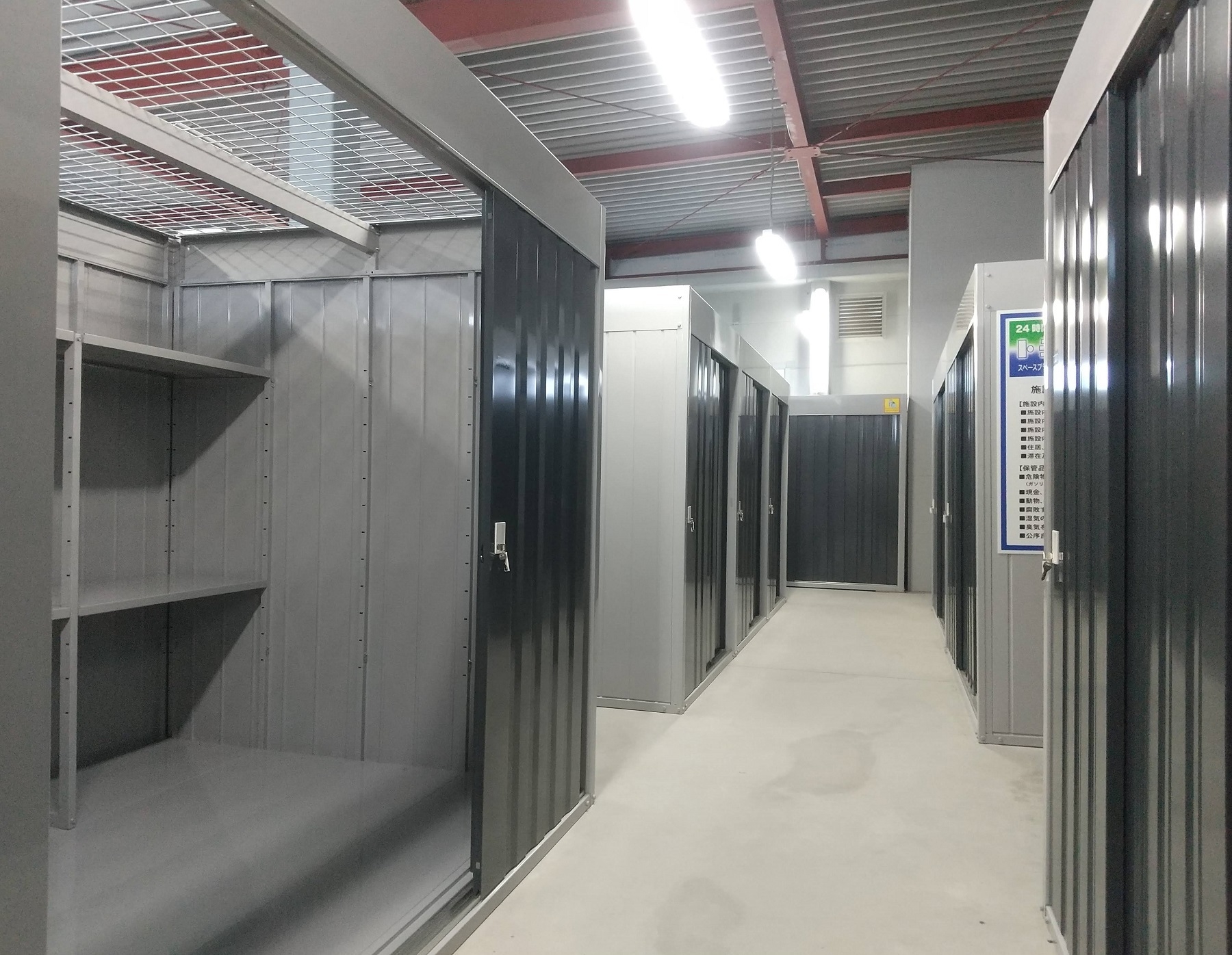 このたび新たにオープンする「スペースプラス熊本鉄工団地」は、熊本総合鉄工団地の敷地内にある建物の2階に位置しており、ビルインタイプの屋内型トランクルームです。荷物用のエレベーターが設置されているのでちょっとした重い荷物の出し入れも可能なほか、全室棚付きのため収納スペースを広く使うことができ、法人・個人とも幅広い層のお客様に適しています。