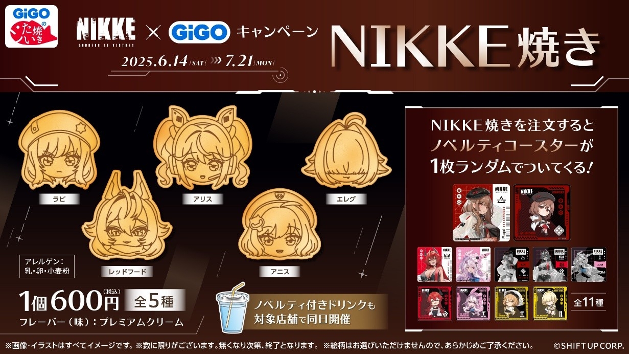 GiGOのたい焼きにて今回のキャラクターのお顔をたい焼きにした『NIKKE焼き』を販売いたします。