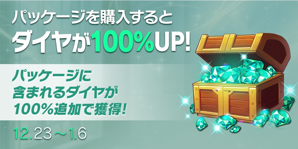 イベント期間中、パッケージに含まれているダイヤが2倍で手に入ります!とってもお得!