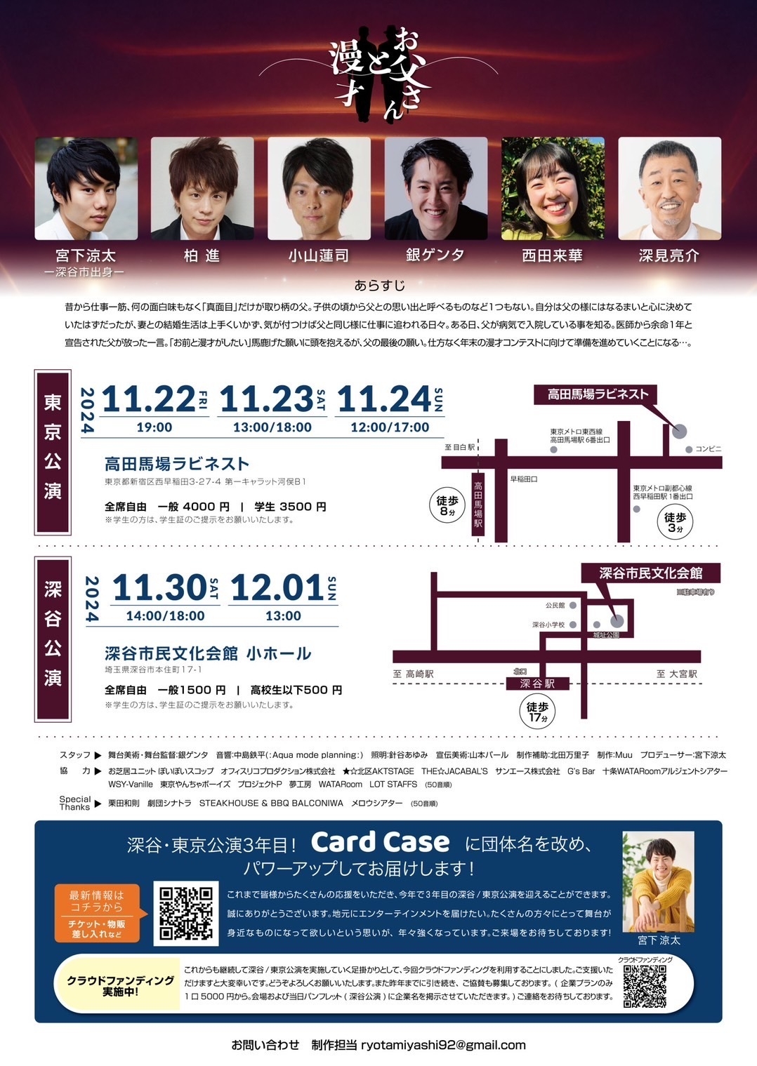 演劇で地元を盛り上げたい!宮下涼太プロデュースCard Case公演 地元埼玉 深谷・東京 高田馬場にて11月下旬より上演