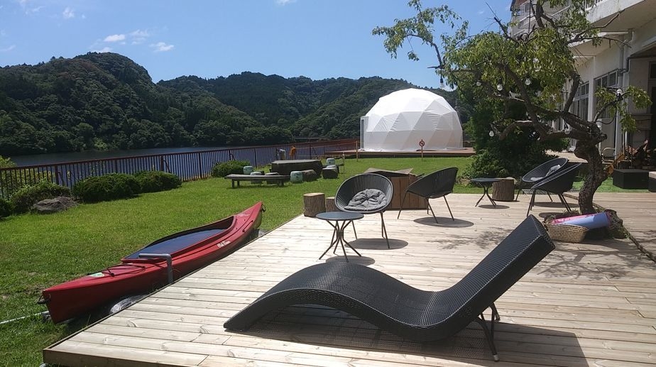 房総半島の中央部に位置する、亀山湖畔に佇む温泉旅館、風光明媚な自然環境に囲まれた湯宿で周辺レジャー施設への観光拠点としても人気、温泉を目的とした休養、静養目的の利用も多く、現在は静かな湖畔の環境を活かした体験型アクティビティやレイクセラピーなど、リトリート目的の滞在型プランの導入を進めている。