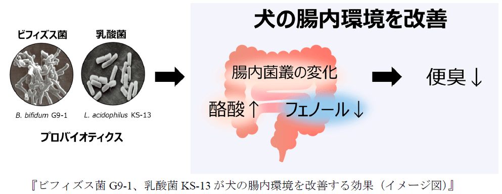 ビフィズス菌G9-1と乳酸菌KS-13が 犬の腸内環境を改善することを確認