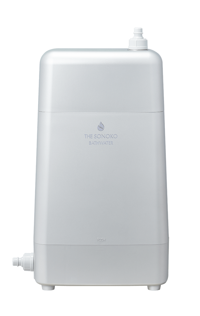 そんな願いを可能にしたのが、浄水機能と活水機能の2つを併せ持つ「THE SONOKO BATHWATER(ザ・ソノコ バスウォーター)」です。肌あたりのやさしい水を浴びて心くつろぐ至福のバスタイムを堪能できます。新しい技術によって分子が小さくなった水は、表面張力が弱くなり、浸透力が向上します。スタッフからは「洗った後の肌や髪を触るのが楽しみになった!」「お風呂上がりのぽかぽか感がうれしい」という声も寄せられています。また、ずっと浴室に置くからこそ、インテリアとして楽しんでいただけるよう、デザインに拘り、更に、どなた様でも簡単に取り付けができるよう工夫しております。